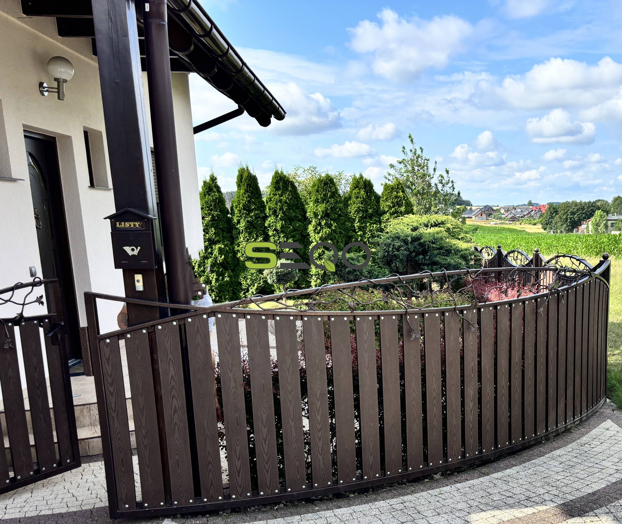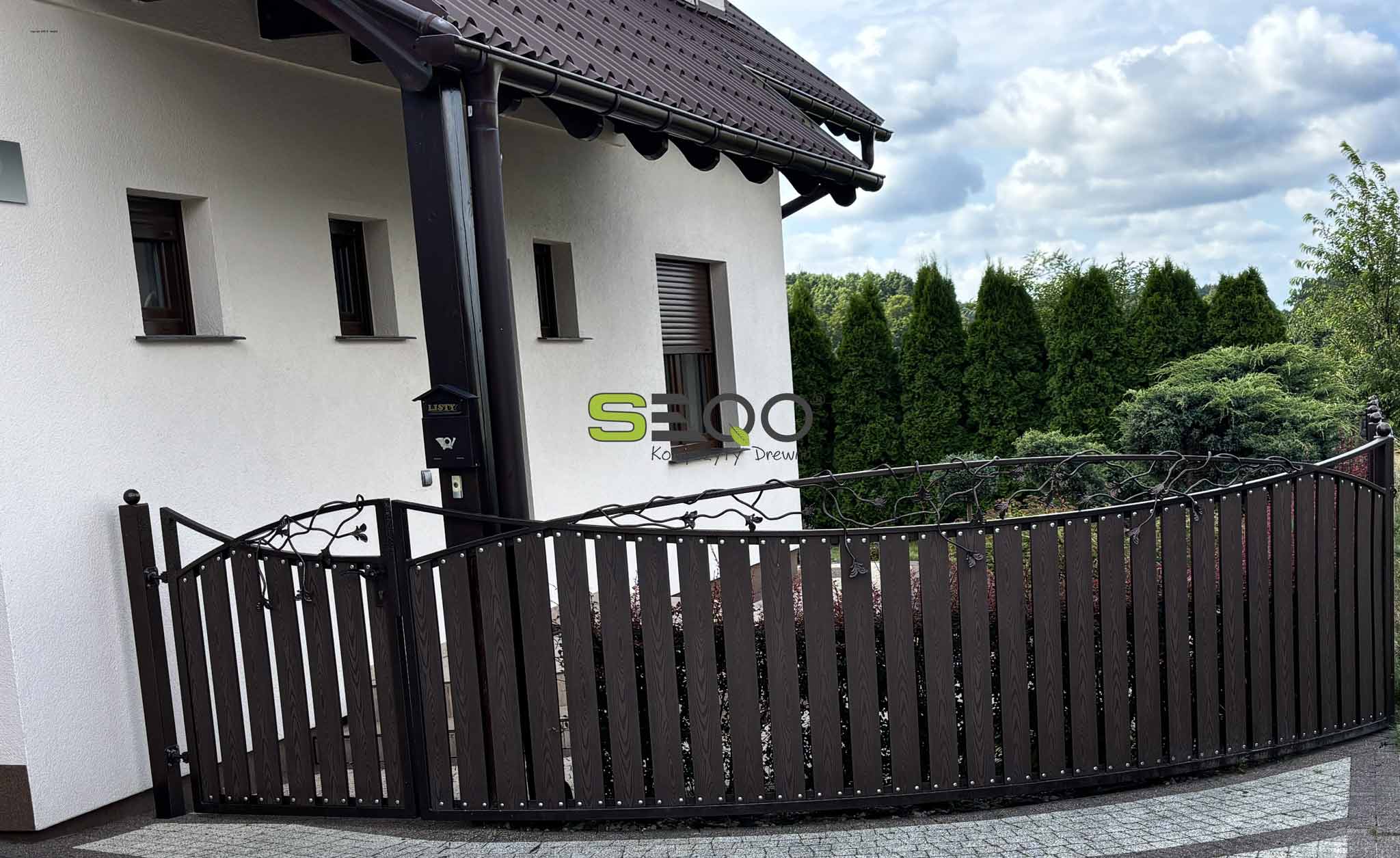 Głównym bohaterem tej realizacji są innowacyjne sztachety z kompozytu drewna SEQO Standard BB-85H13. Ten nowoczesny materiał to gwarancja świętego spokoju na lata. Wybierając kompozyt, zyskujesz ciepły, naturalny wygląd do złudzenia przypominający tradycyjne drewno, ale bez konieczności uciążliwej, corocznej impregnacji, malowania i renowacji. Odporność na warunki atmosferyczne to w tym przypadku absolutny standard.