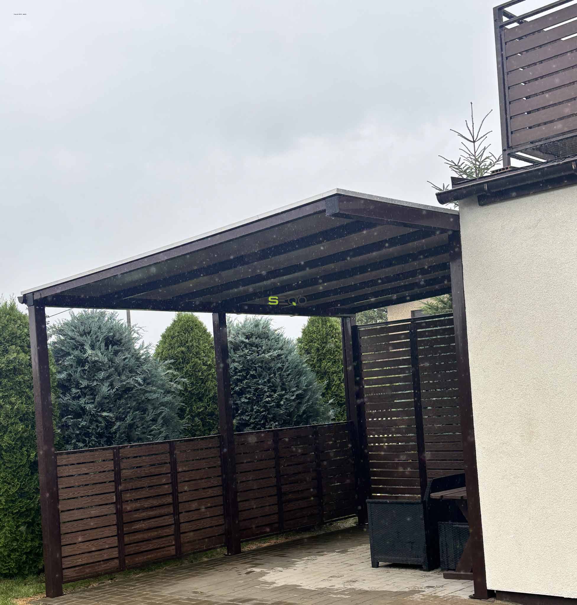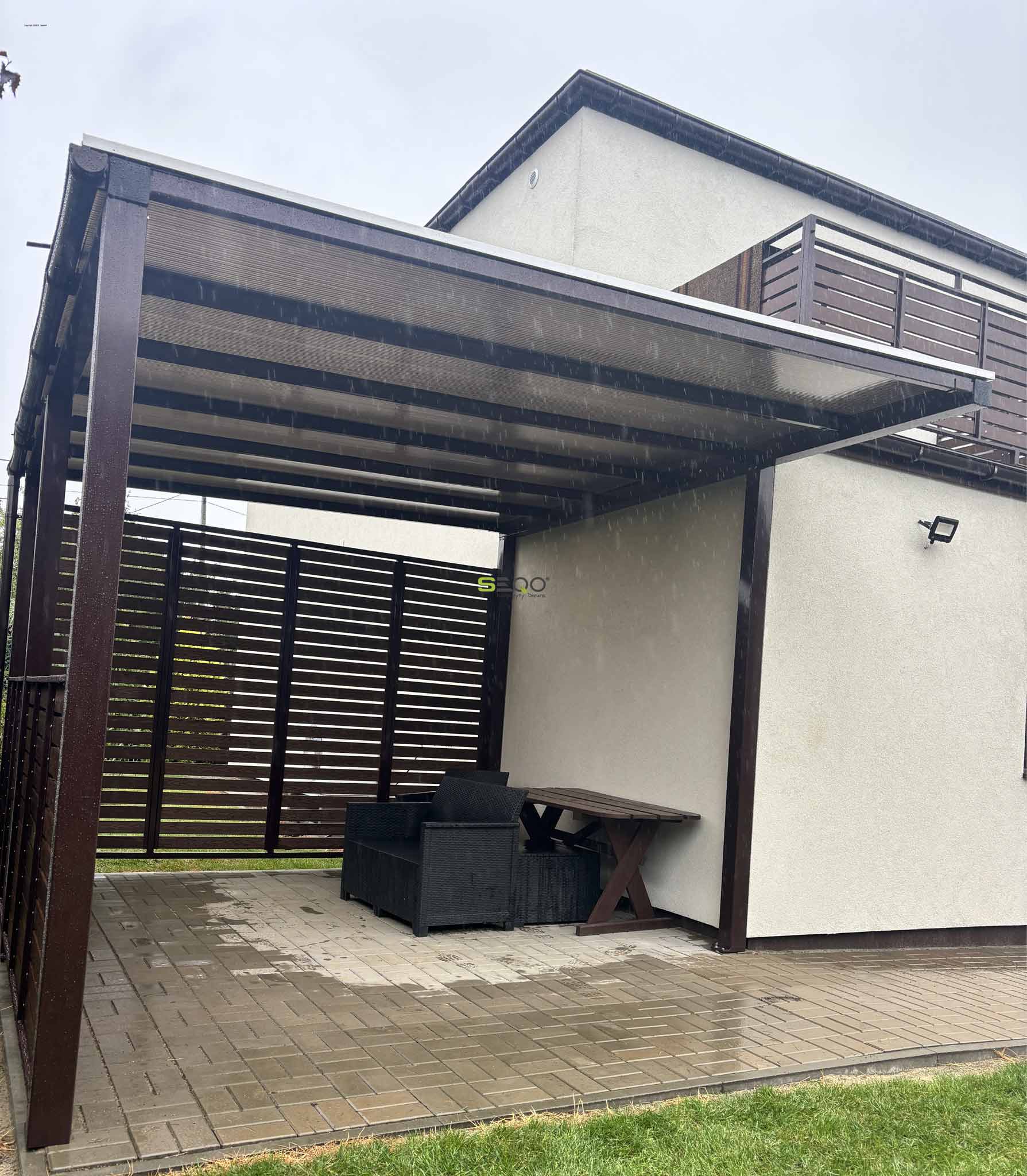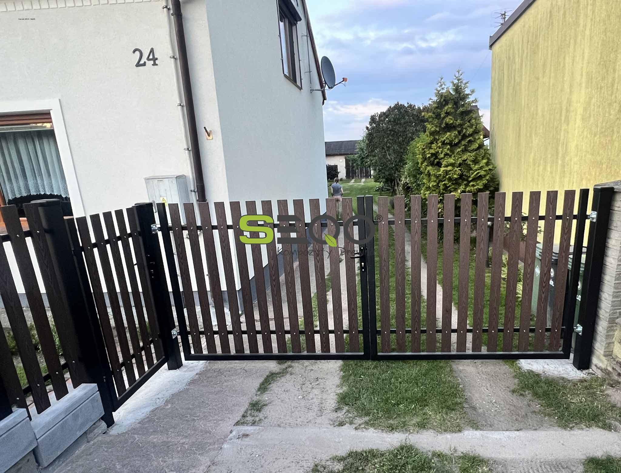 Pierwsze wrażenie robi się tylko raz, a wejście do domu jest wizytówką każdego właściciela. Na prezentowanych zdjęciach widzimy realizację, która idealnie wpisuje się w aktualne trendy designu zewnętrznego. Połączenie pionowych sztachet kompozytowych w kolorze czekoladowym z antracytowymi elementami konstrukcyjnymi tworzy harmonijną całość z bryłą budynku.