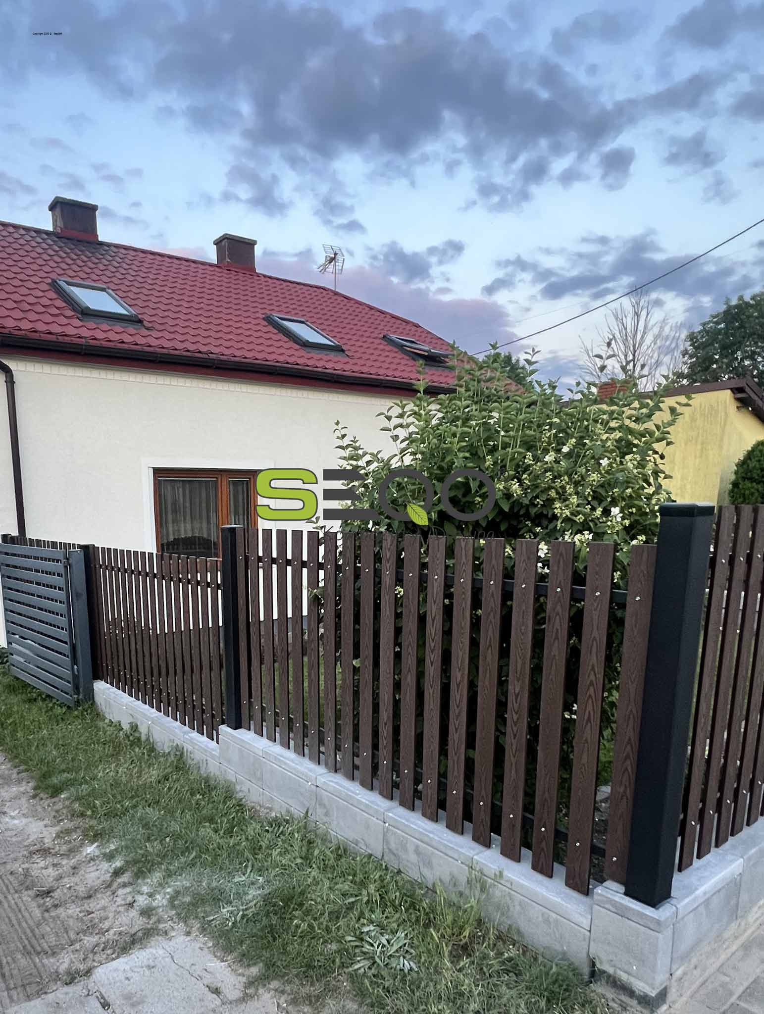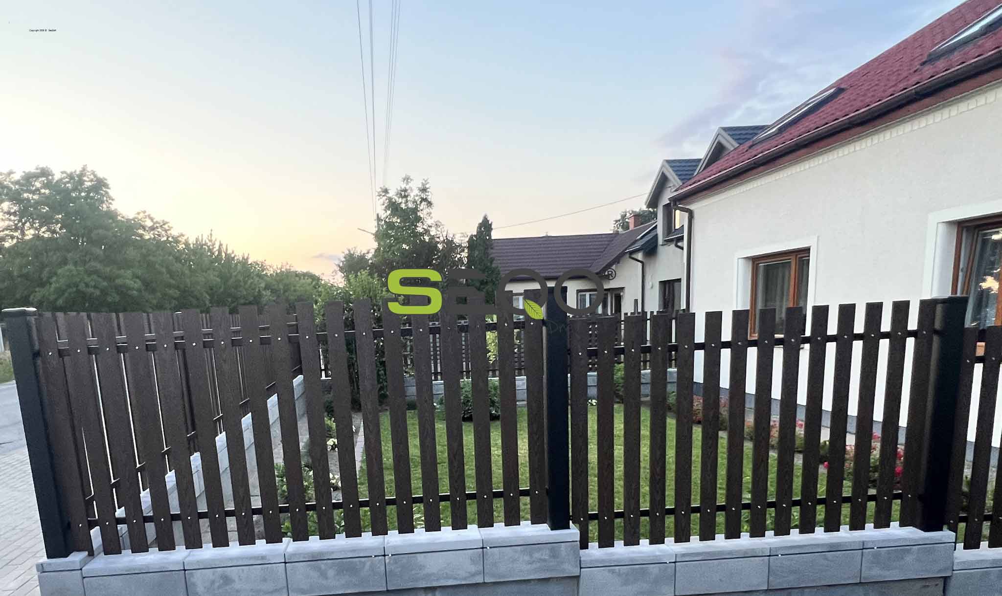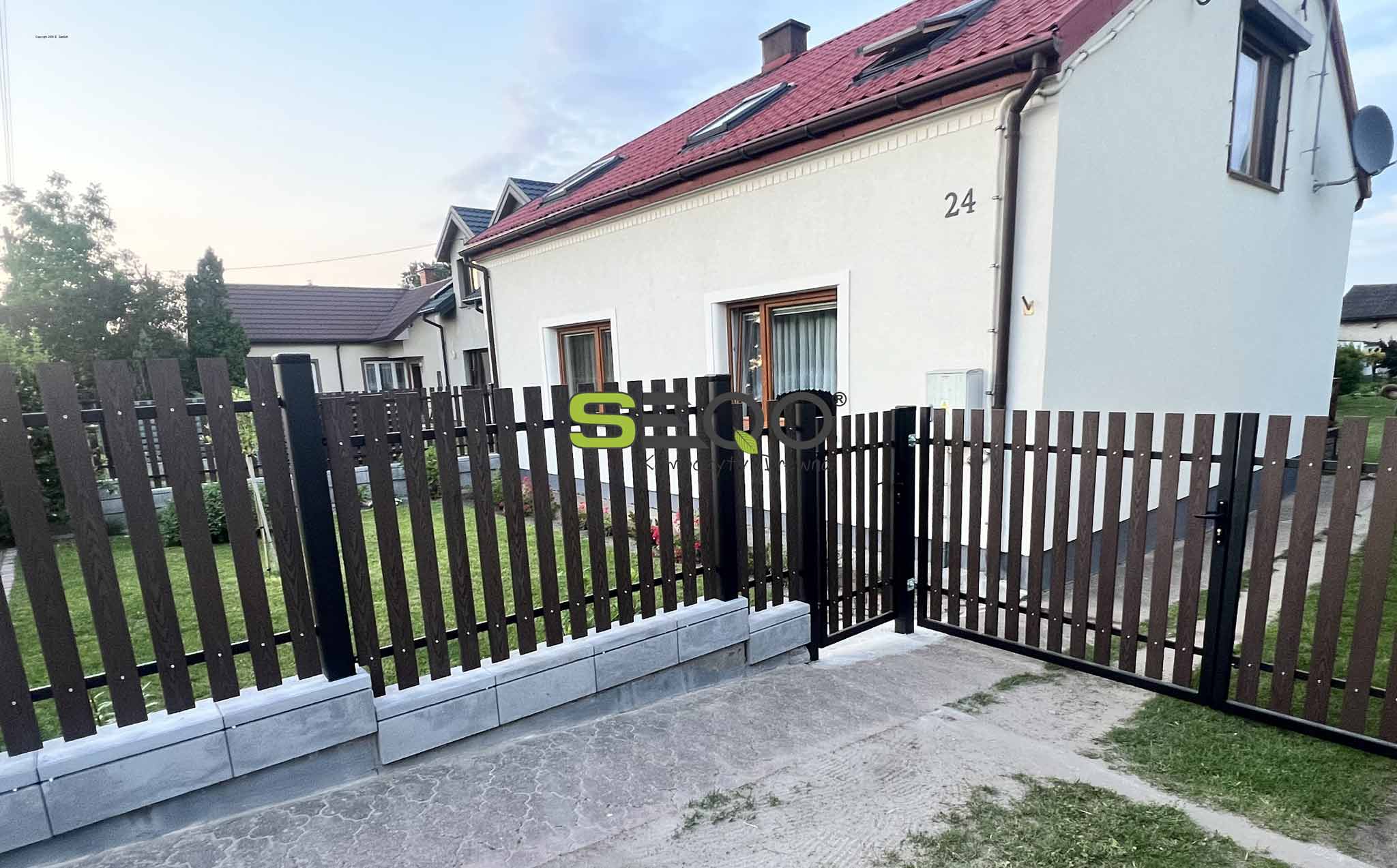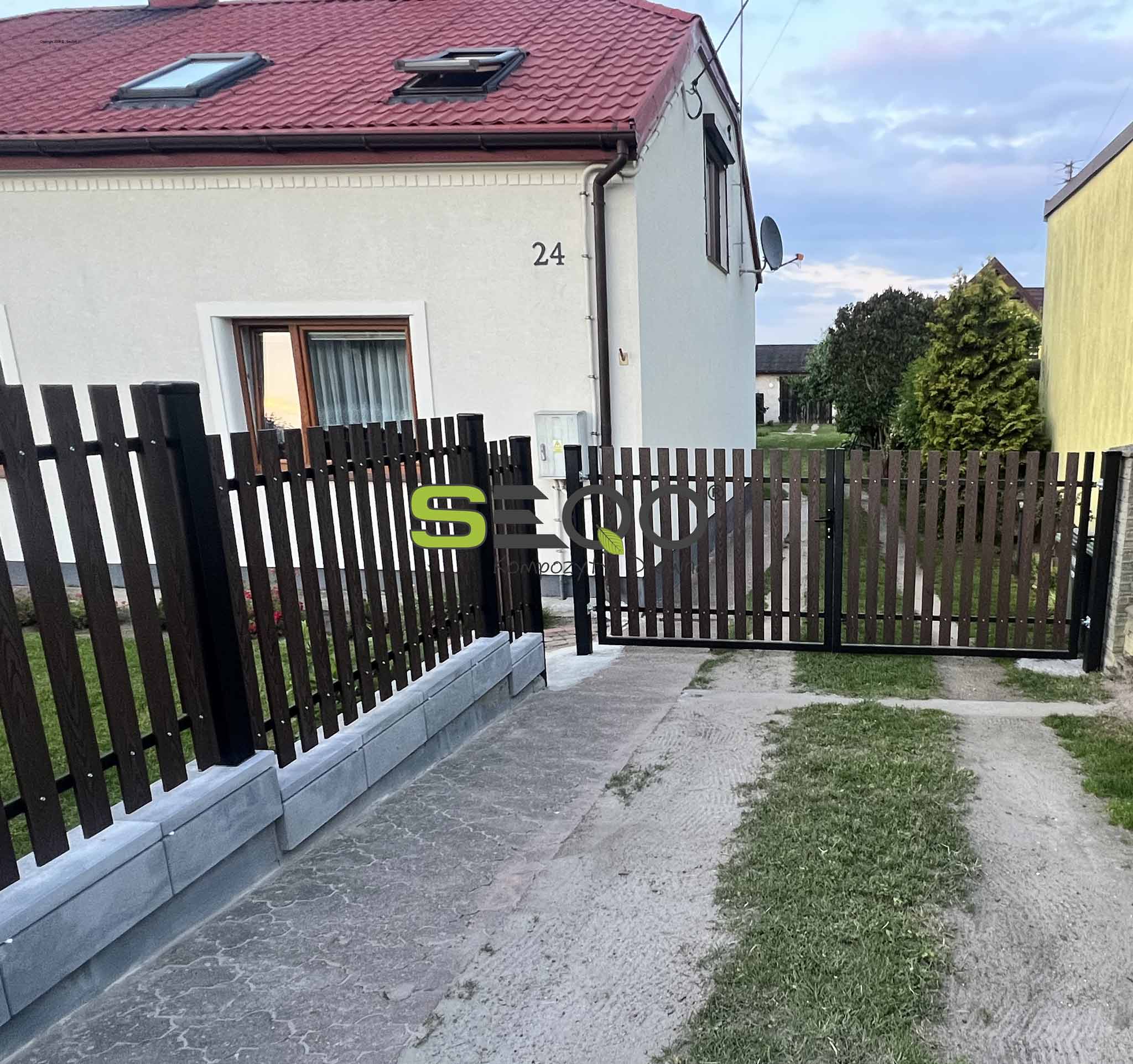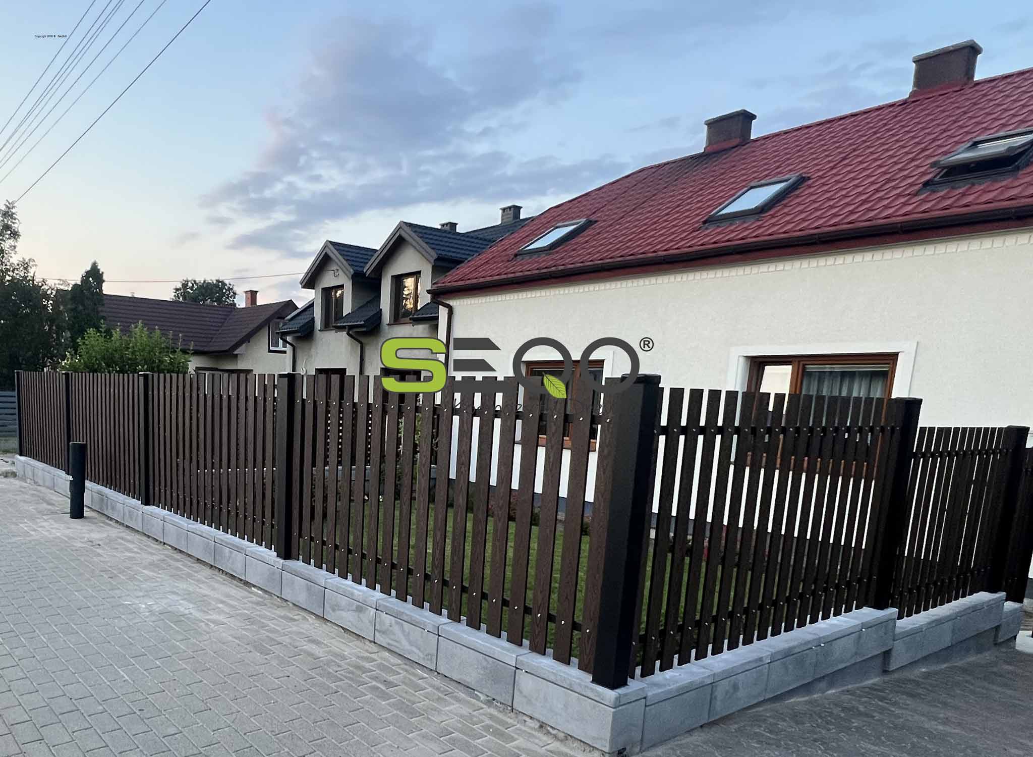 Nowoczesne ogrodzenie kompozytowe w kolorze czekoladowym